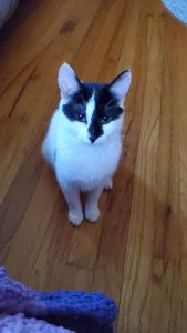 Sneaker is a rescue cat and survivor who was pulled from a dumpster three days after his birth. Sneaker is a selective-lover, but, when it comes to his chosen humans, he is loving, sweet and mushy. (Photo via Sage Hason)