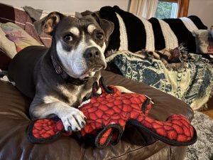 Winston is a seven month old rescue from St. Huberts in Madison, NJ. He’s a mix of Carolina and a Black Mouth Cur. He loves walks and playing with his lamb chop stuffed animal. (Photo via Ryan Murphy)